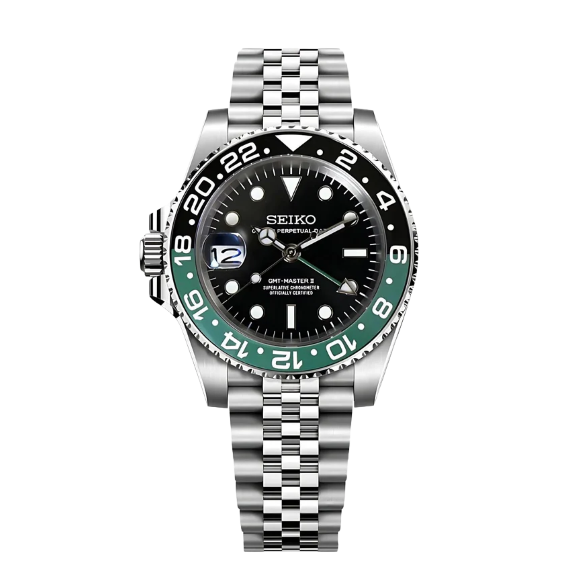Cambia el juego con el Sprite GMT Seiko Mod. Su bisel bicolor es un guiño a la alta relojería, perfecto para los que quieren el mejor flex en las calles. Unidades limitadas a una sola pieza. Agrégalo a tu colección y resalta del resto.